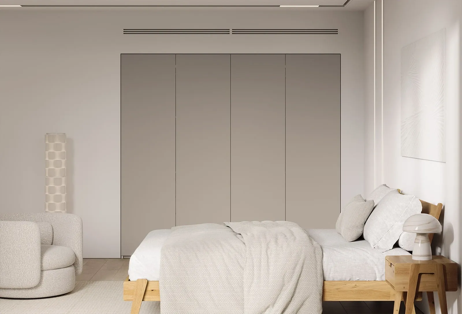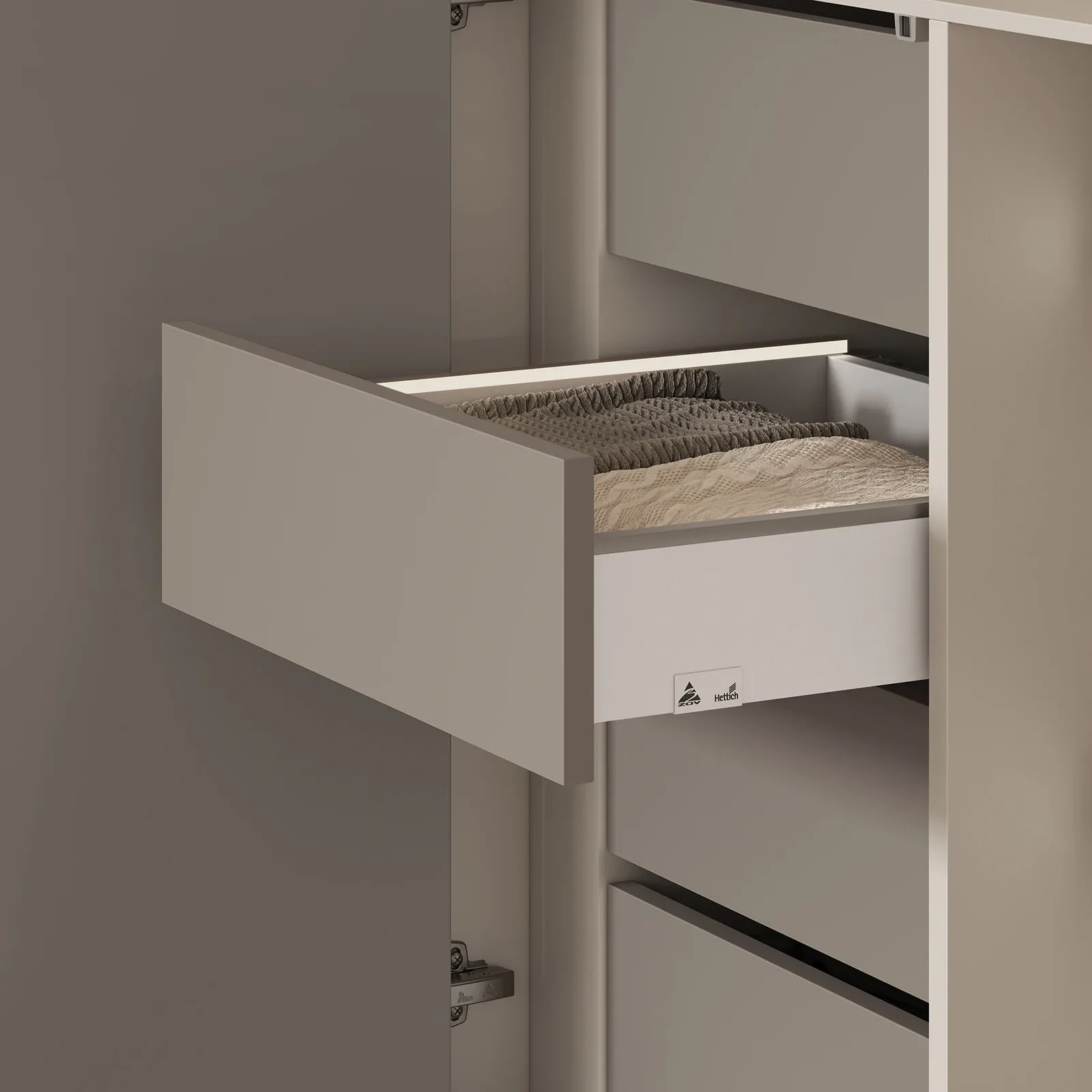 КАРКАС, ПОЛКИ, ЗАДНЯЯ СТЕНКА ЛДСП, цвет Ярко-серый ФАСАДЫ ЛМДФ PRIME, цвет Меринос