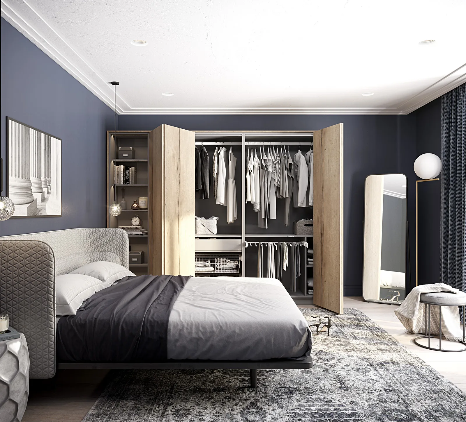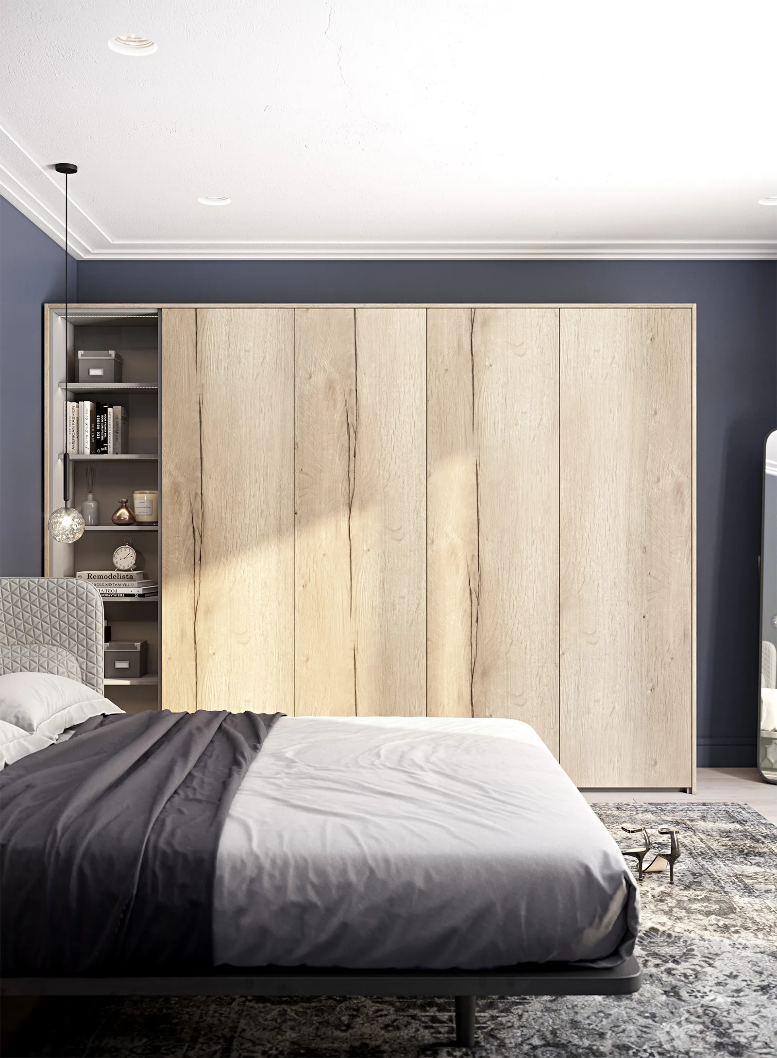 КАРКАС, ЗАДНЯЯ СТЕНКА, ПОЛКИ, ВЫДВИЖНЫЕ ЯЩИКИ ЛДСП Серый Пыльный ФАСАДЫ Тимбер Галифакс
