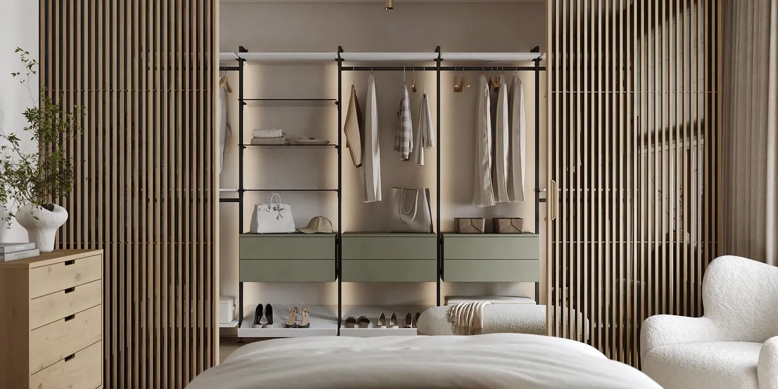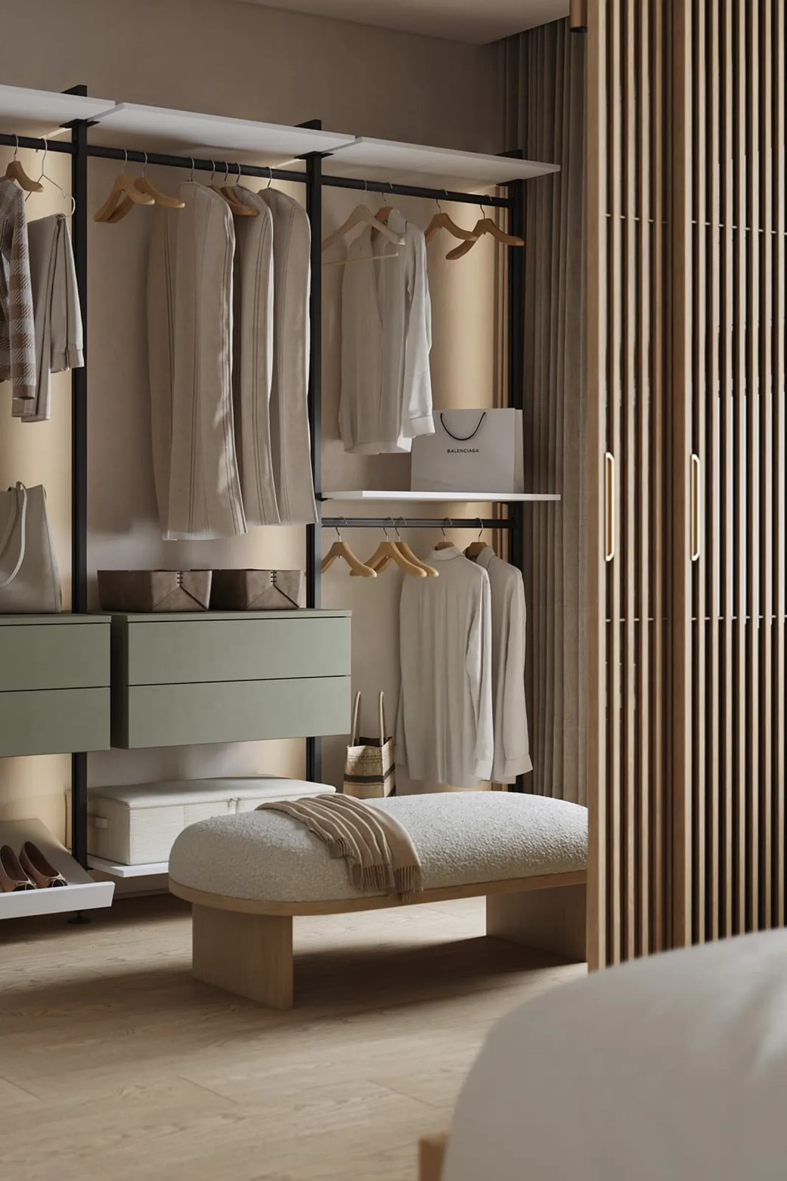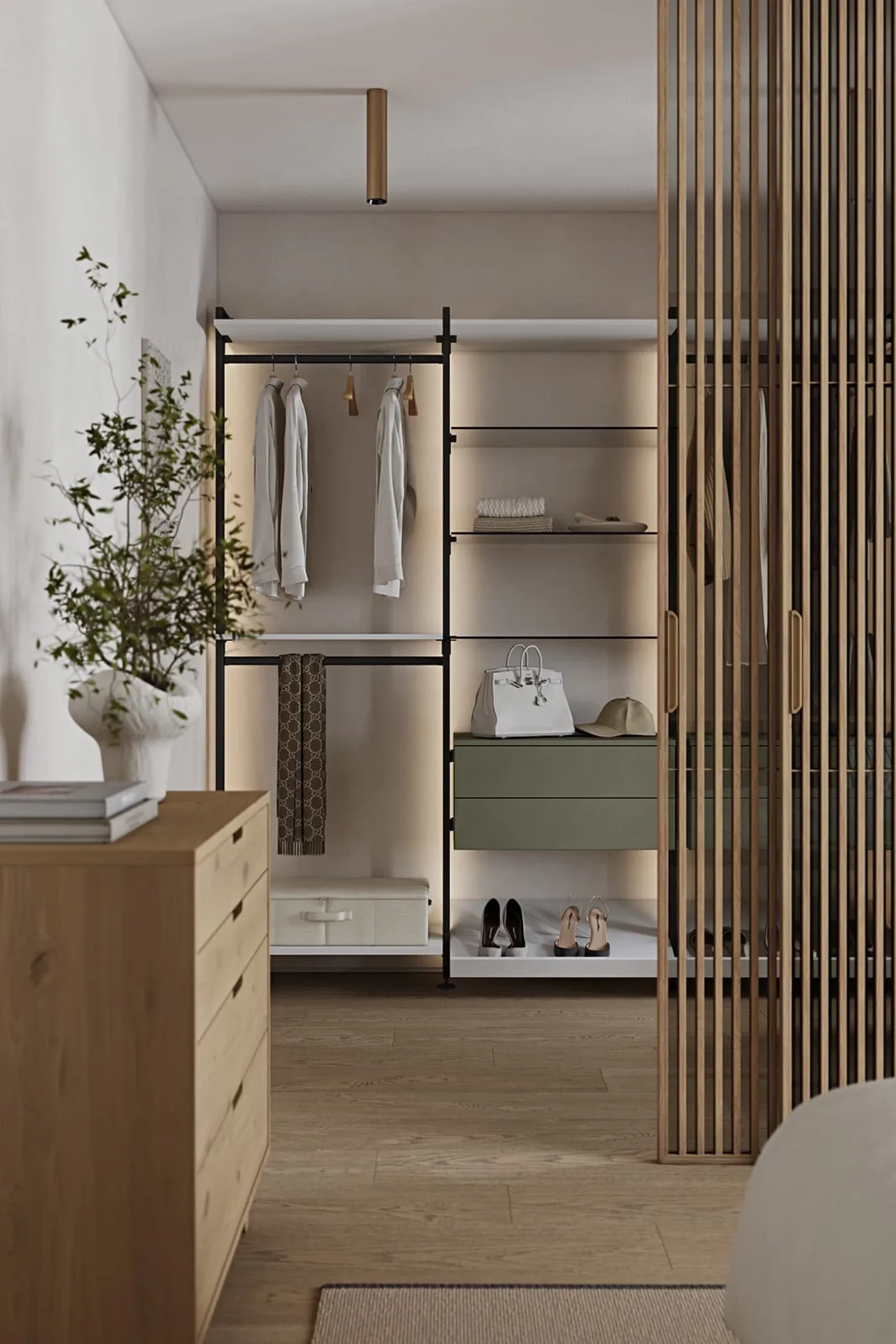 ОПОРНЫЙ ПРОФИЛЬ PA 02, цвет Черный Матовый НАВЕСНЫЕ ЭЛЕМЕНТЫ ЛДСП (толщина 18 мм), цвет Белый Премиум / крашеная МДФ (толщина 19 мм), цвет NCS S 4020-G30Y Матовый / стекло Графит прозрачное (толщина 6 мм)