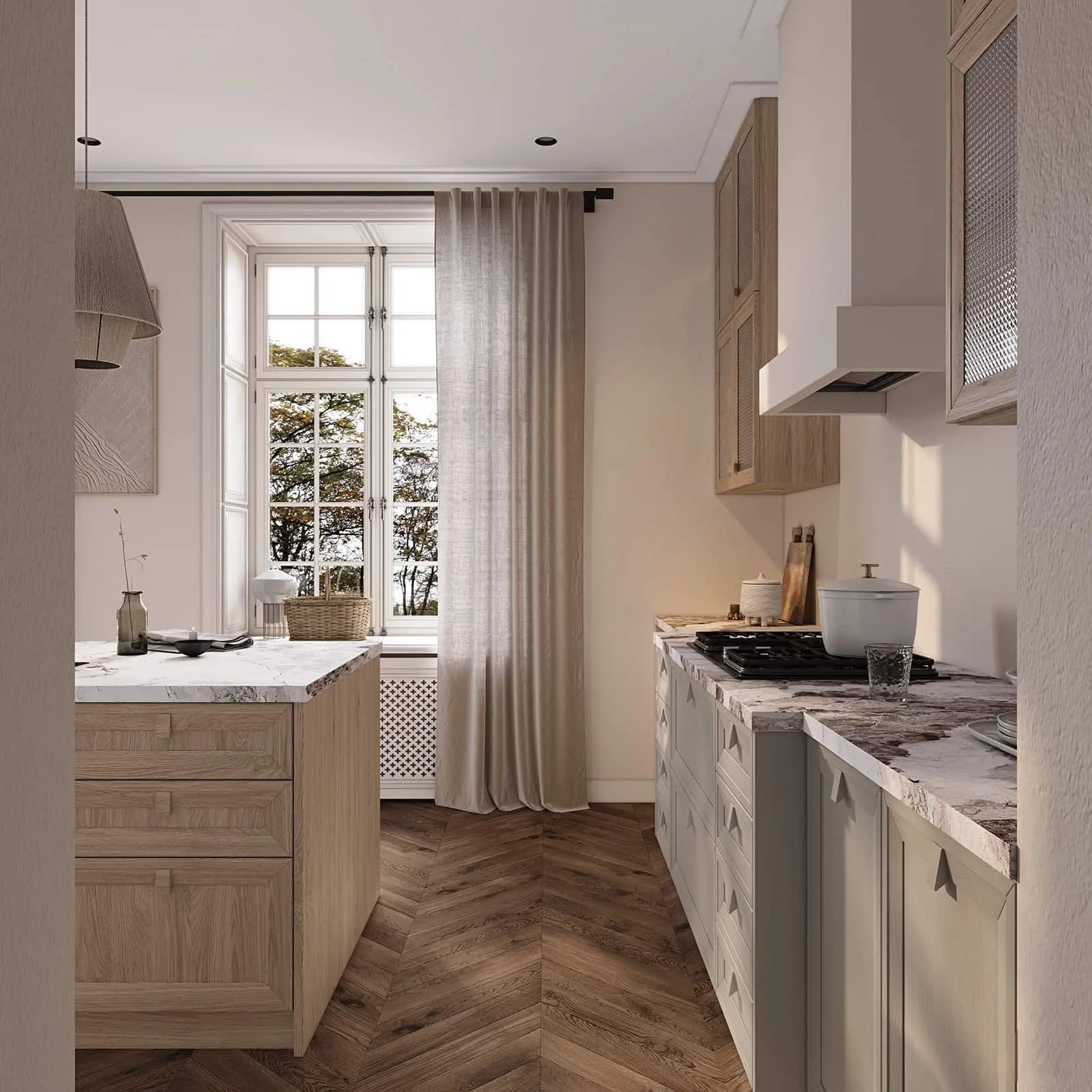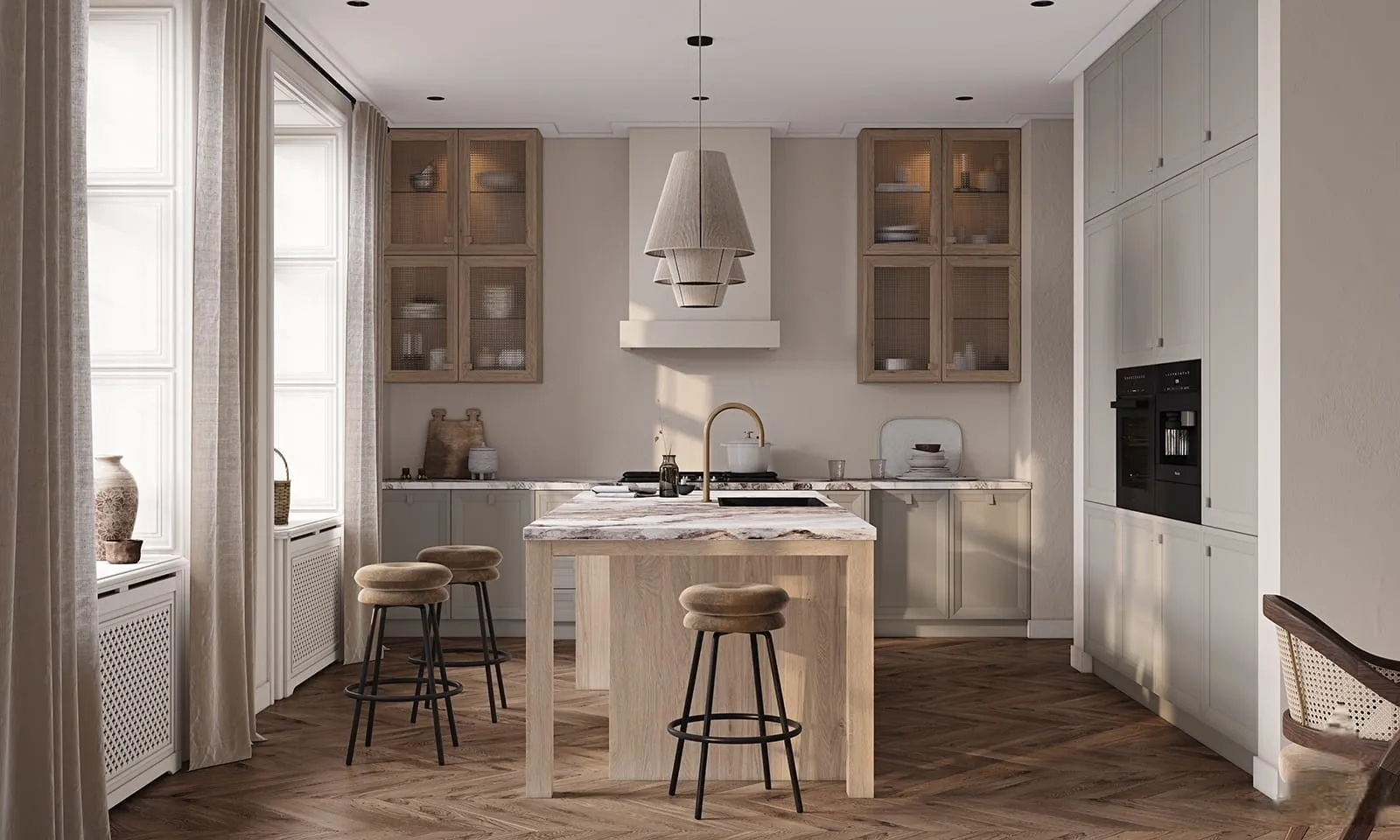 Фасады: Т746 Натуральный дуб, цвет NCS S 2005-G30Y / #189 (воскобейц Белый).