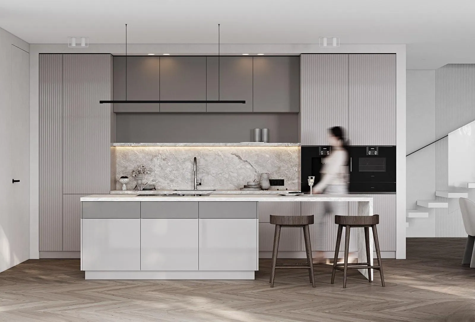 Фасады: Флавио (крашеная МДФ), цвет NCS S 2002-Y50R Глянец / «Система», цвет NCS S 5005-Y50R Матовый, NCS S 1502-Y50R Глянец
