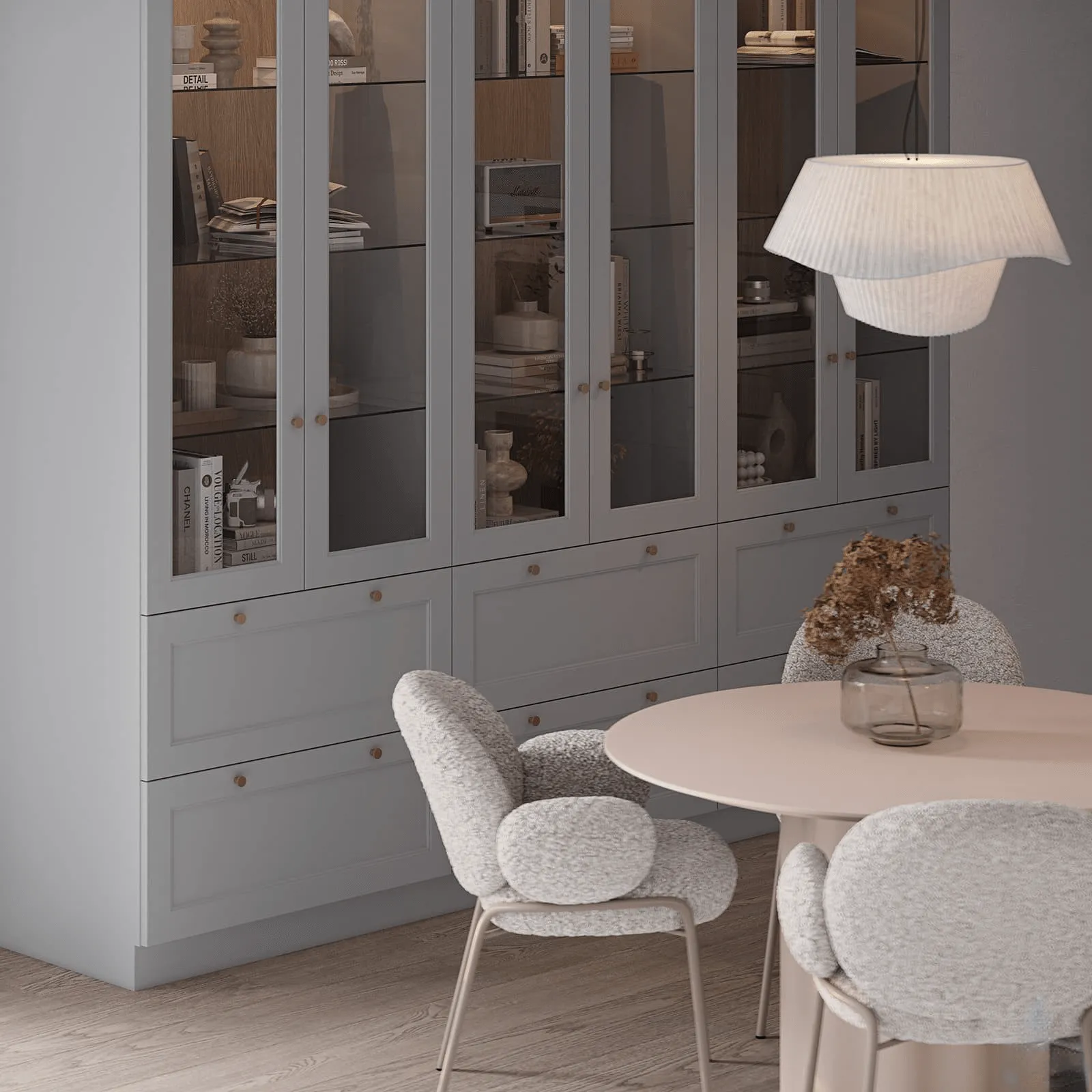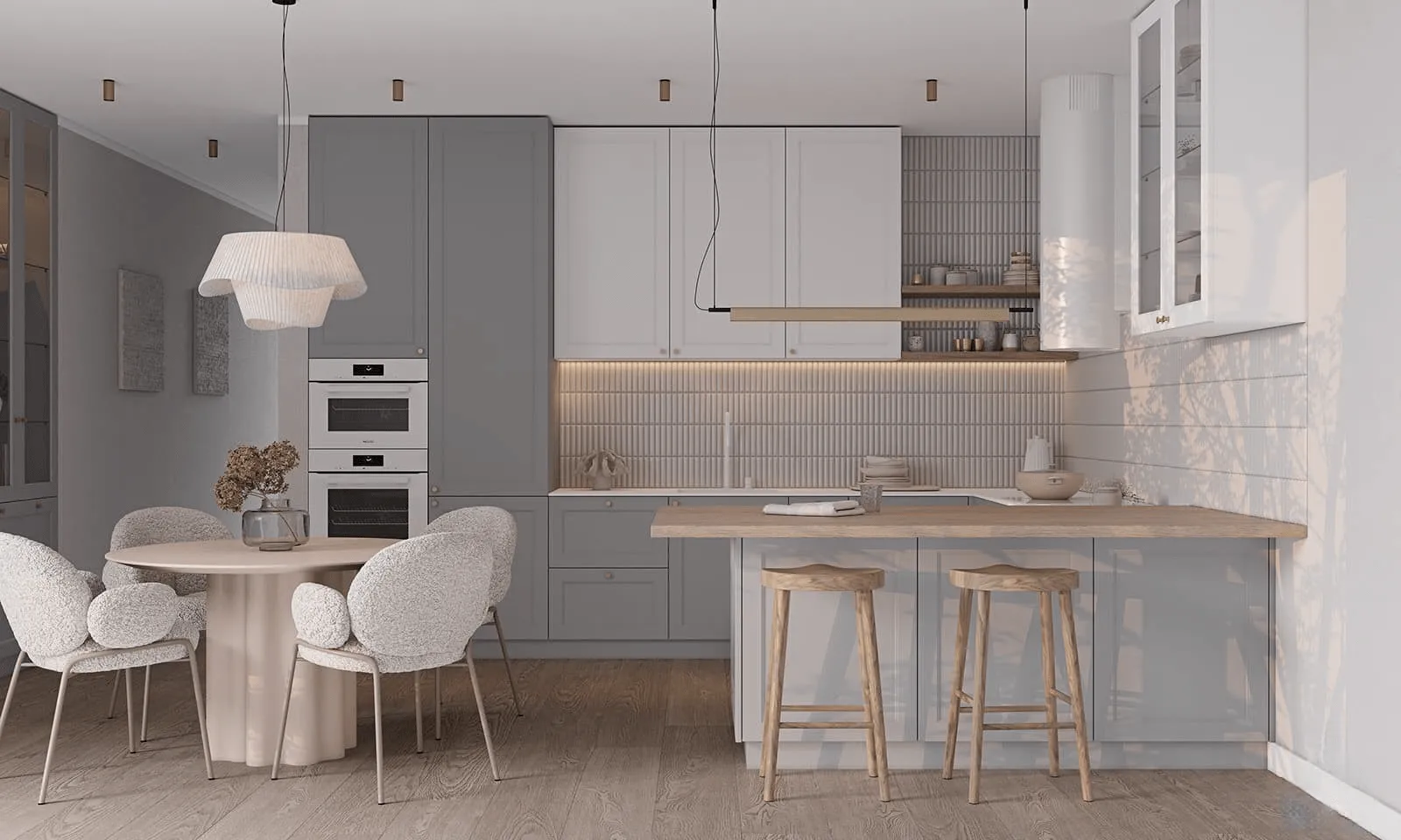 Кухня ЛИЯ олицетворяет собой искусство сочетания функциональности и эстетического восхищения.Фасады МДФ, окрашенные в нежные приглушенные оттенки, придают ей особый шарм и необычность. Они привлекают внимание и создают атмосферу спокойствия и вдохновения. А имитация филенки в стиле неоклассика, которая присутствует на этой кухне, добавляет особый шарм и неповторимость.