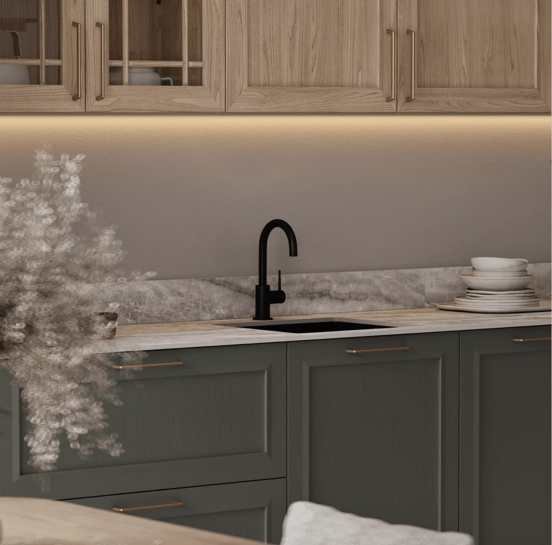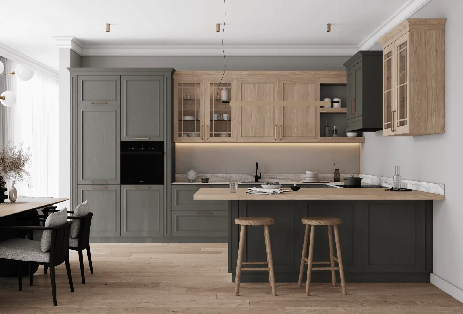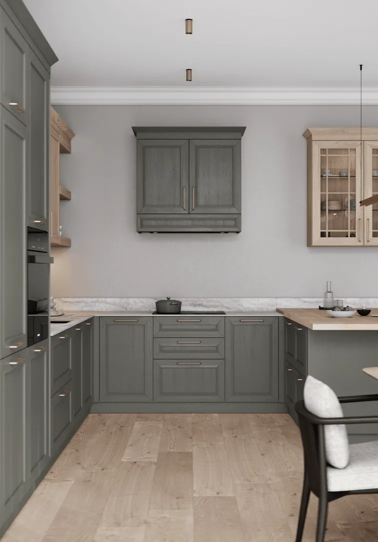 Фасады: Т563 Натуральный ясень, цвет 189 / NCS S 7005-G50Y..