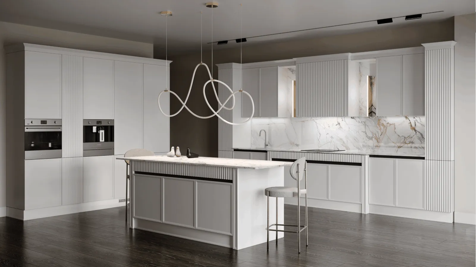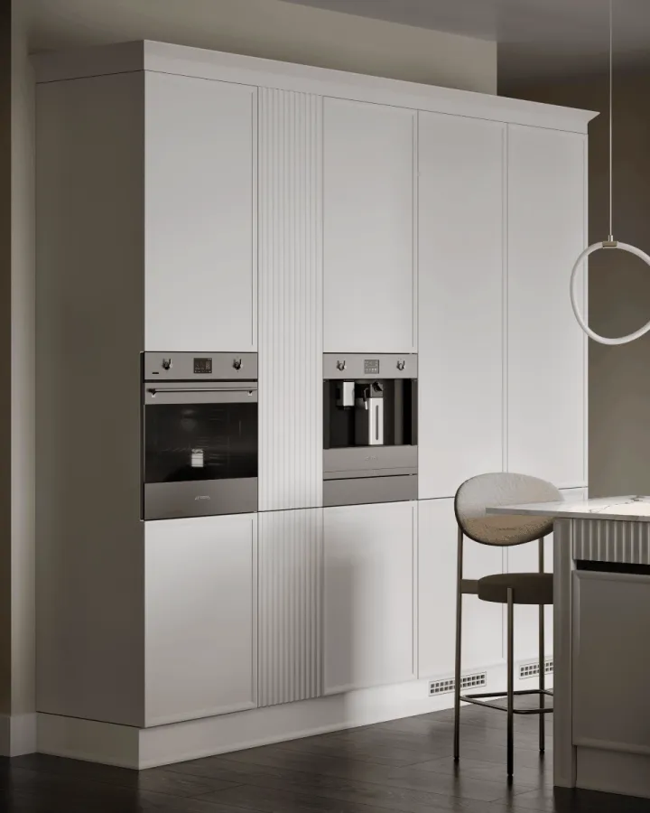 Фасады: МДФ эмаль Т641 RAL 9010 мат, Т644 RAL 9010 мат.