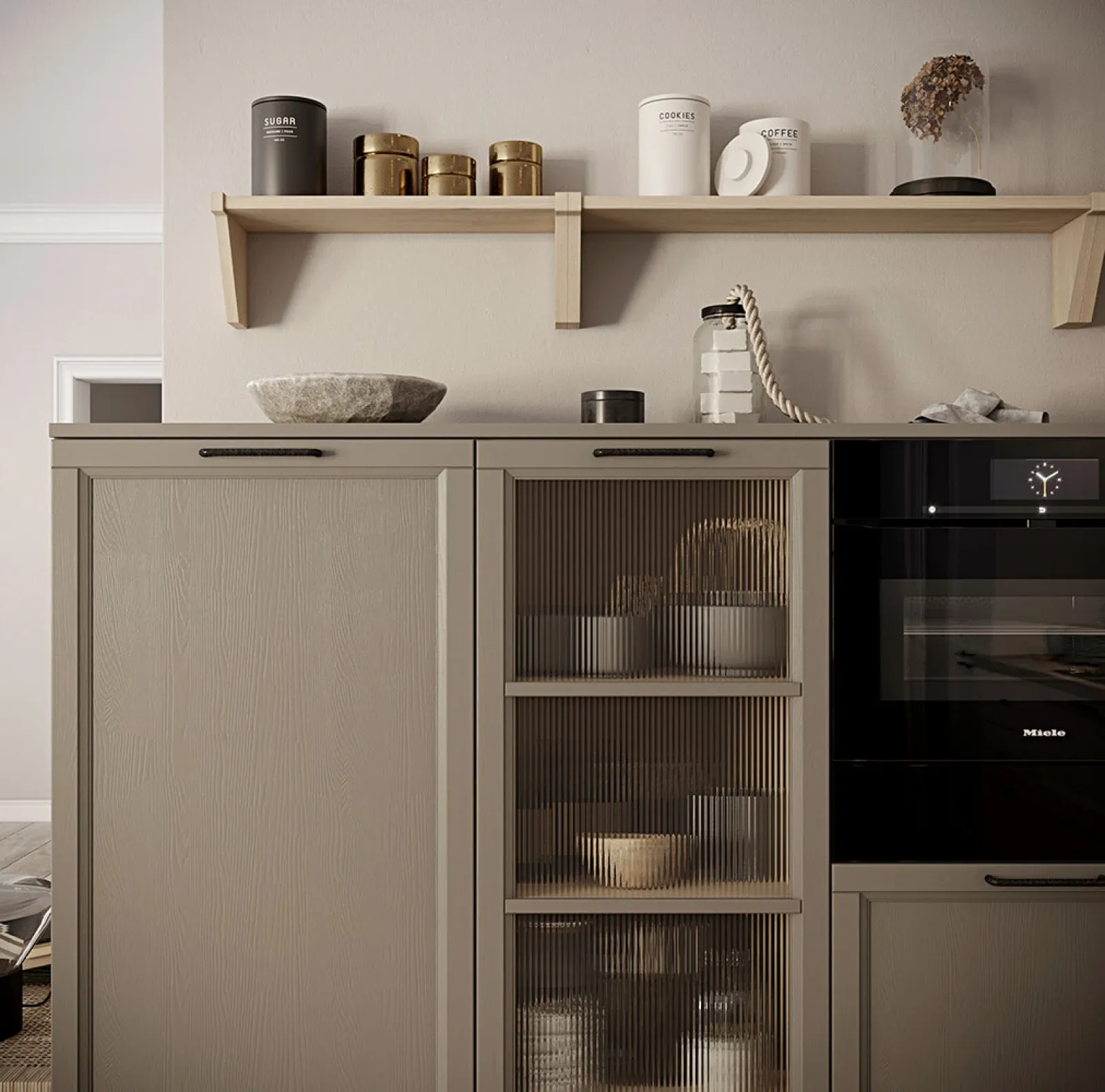 ФАСАДЫ Т761 Натуральный дуб, цвет 143 / 124 / NCS S 7010-R50B СТОЛЕШНИЦА Пластик HPL, 38 мм